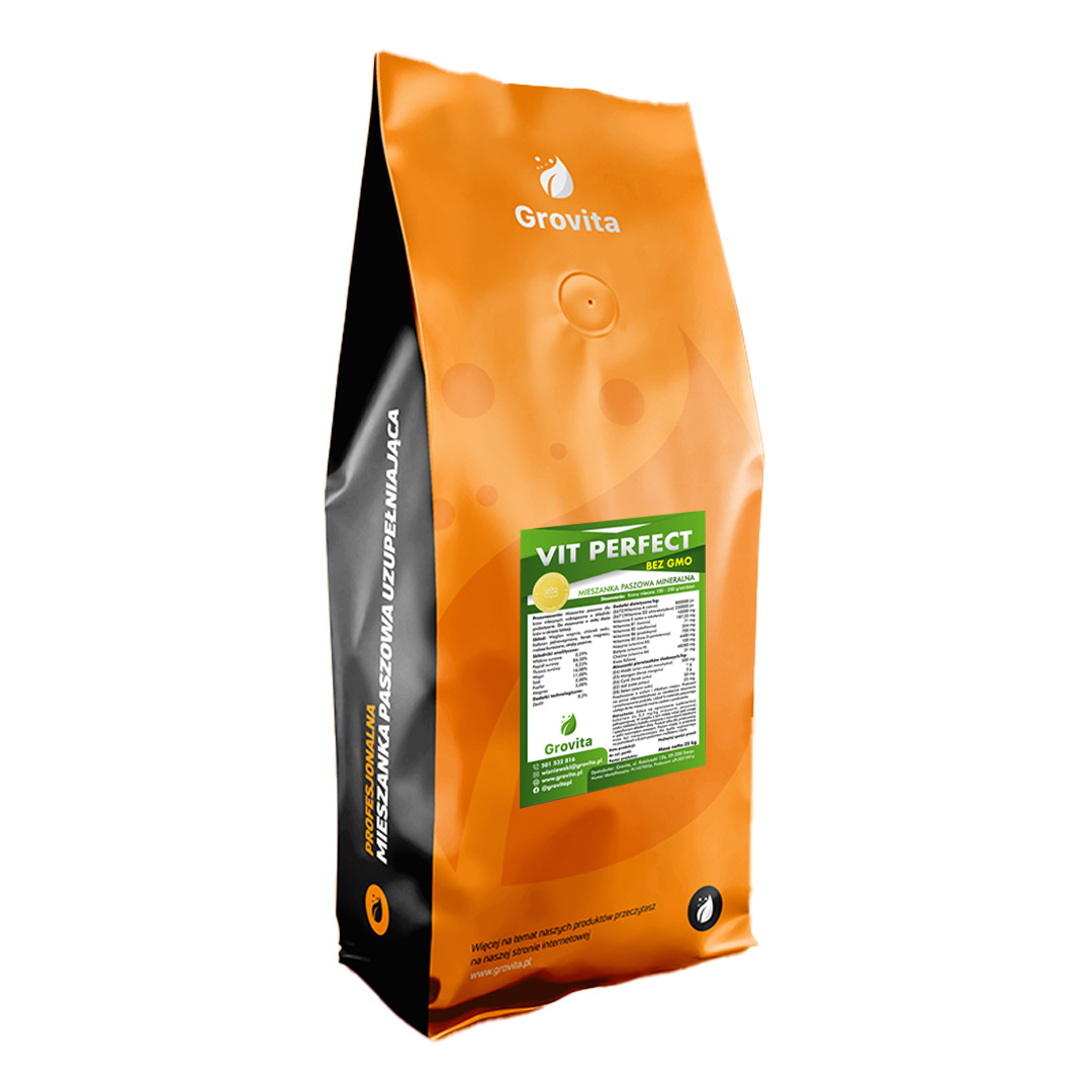 Dodatki dietetyczne: Witamina A (800 000 jm), Witamina D3 (250 000 jm), Witamina E (10 000 mg), Witamina B1 (187,55 mg), Witamina B2 (71mg), Witamina B6 (324 mg), Witamina B5 (700mg), Niacyna (4480 mg), Biotyna (100 mg), Cholina (48 280 mg), Kwas foliowy (31mg).